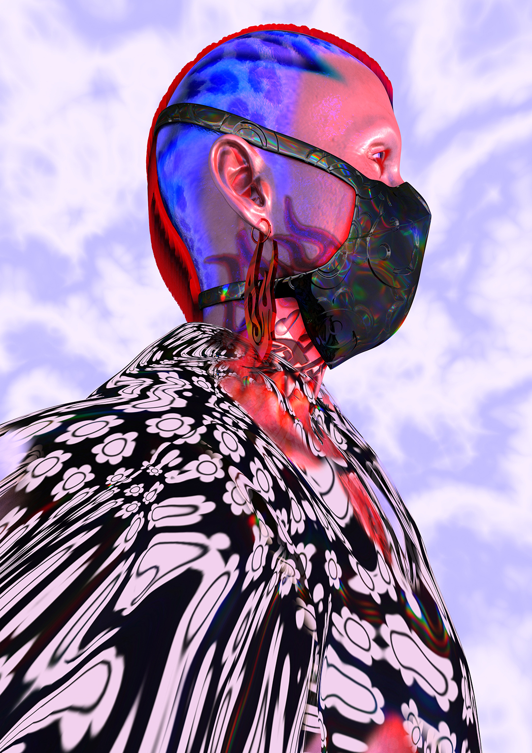 TEHNC collaborated with creative head Simone Ferraro + ABM on the limited-edition capsule drop, Touch Me. We created avatars wearing daisy-drip outfits for the collection. Serendipitously the URL flower fabric of the avatar’s outfits was turned into IRL 100% silk fabric by the brilliant ABM fam. Made in Italy.